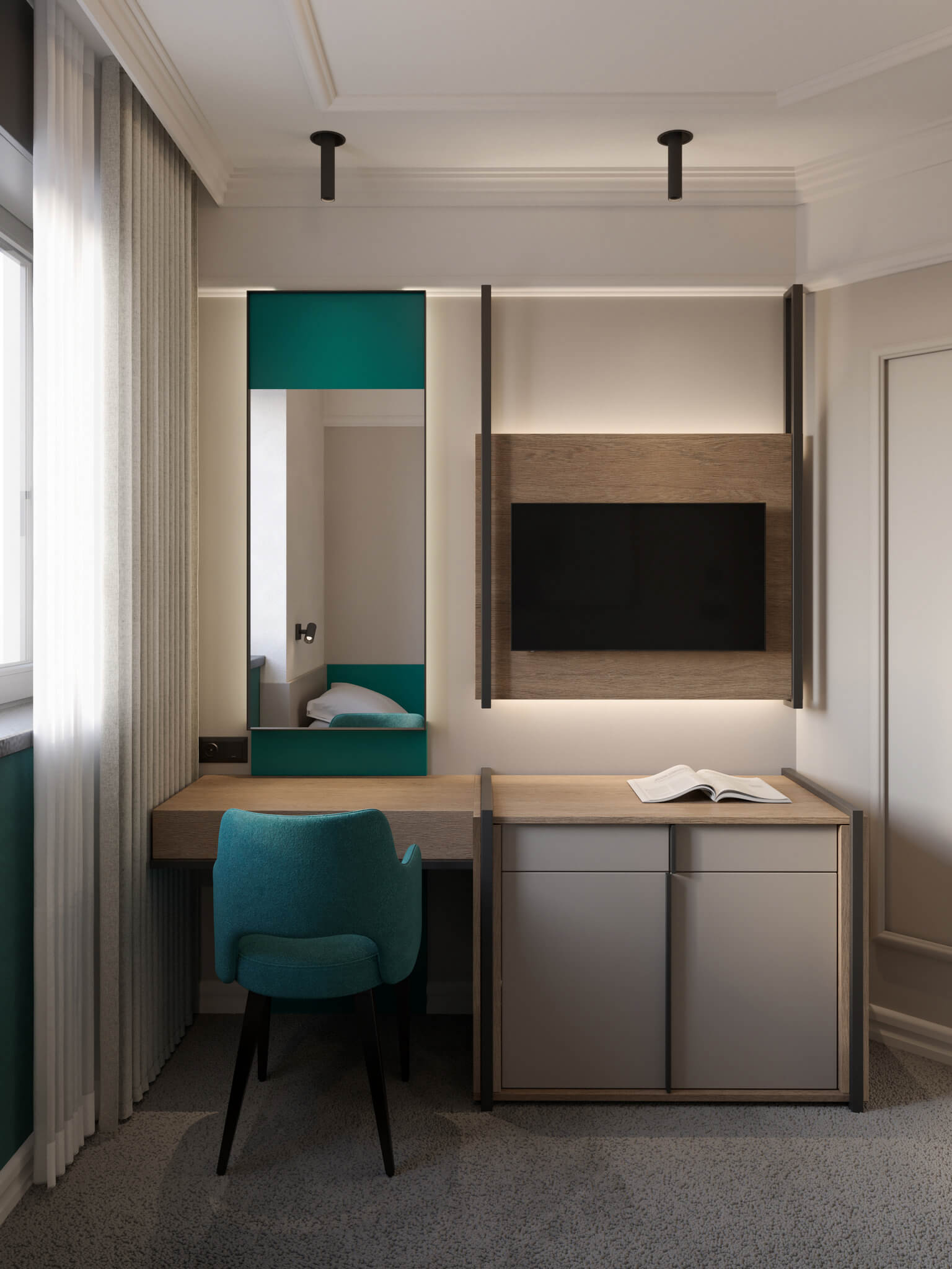 Soba je pažljivo organizovana kako bi pružila funkcionalnost i udobnost u kompaktnom prostoru, stvarajući prijatan ambijent za goste koji traže jednostavan i miran boravak. Idealna je za putnike koji dolaze sami i koji žele kvalitetan smeštaj za kratko zaustavljanje u Kraljevu.